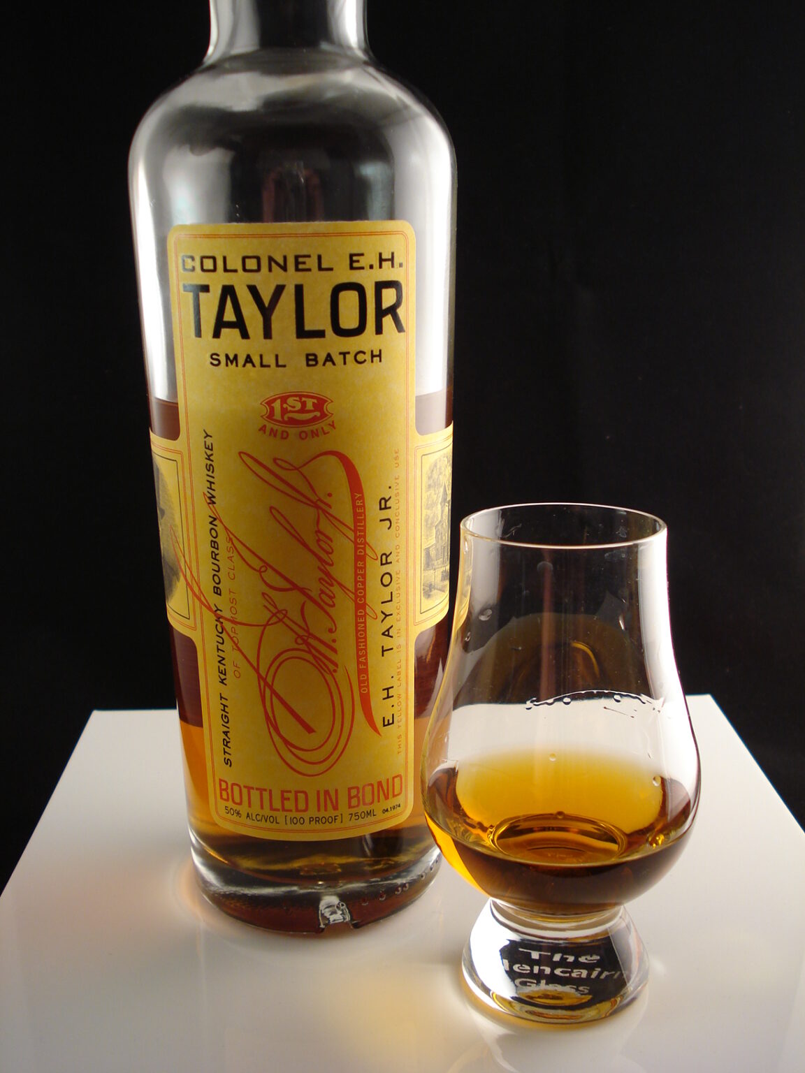 The Small batch offering is packaged much like the rest of the line, in tall, attractive bottles with yellow labels, packaged in a cylindrical hard canister that harkens back to the packaging methods of Col. Taylor himself over a century ago. While I applaud the nod to history, the container method of packaging doesn’t add much to a bottle’s attractiveness, as most will remove the bottle from the container when displaying it anyway. Nonetheless, it’s a very nice overall appearance.