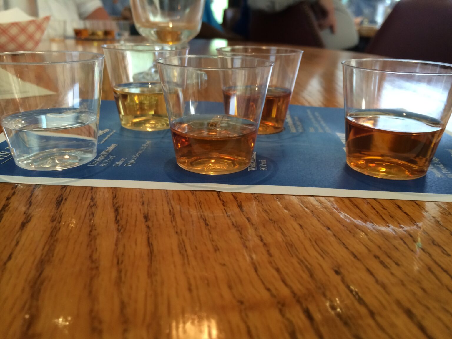 Our first tasting was as basic as you can get, Georgia Moon Corn Whiskey.  This is un-aged corn whiskey, which is different from Moonshine as it uses a traditional mash with 80% corn.  Moonshine skips the mash step and cheats by using sugar. This is what some of the first whiskey would have tasted that was made with corn from Corn Island in the Ohio River off the banks of Louisville.  It is sweet on the palate and at 80 proof it is pretty smooth. Better than I expected, but I wont be drinking it again anytime soon, unless it is to start a whiskey flight for a tasting like this as Bernie suggested.