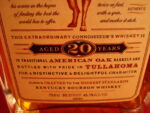 Some cinnamon and clove on the tip of the tongue, this drinks like a light and smooth bourbon, not really like I might expect a 20 year old whiskey to taste. There is definitely some tannins, but it’s not a particularly strong oaky flavor. In fact, it left me wanting a little more oak on the palate. The sweetness I was expecting based upon the nose never developed either. In fact, the whole experience came off thin and lacking.