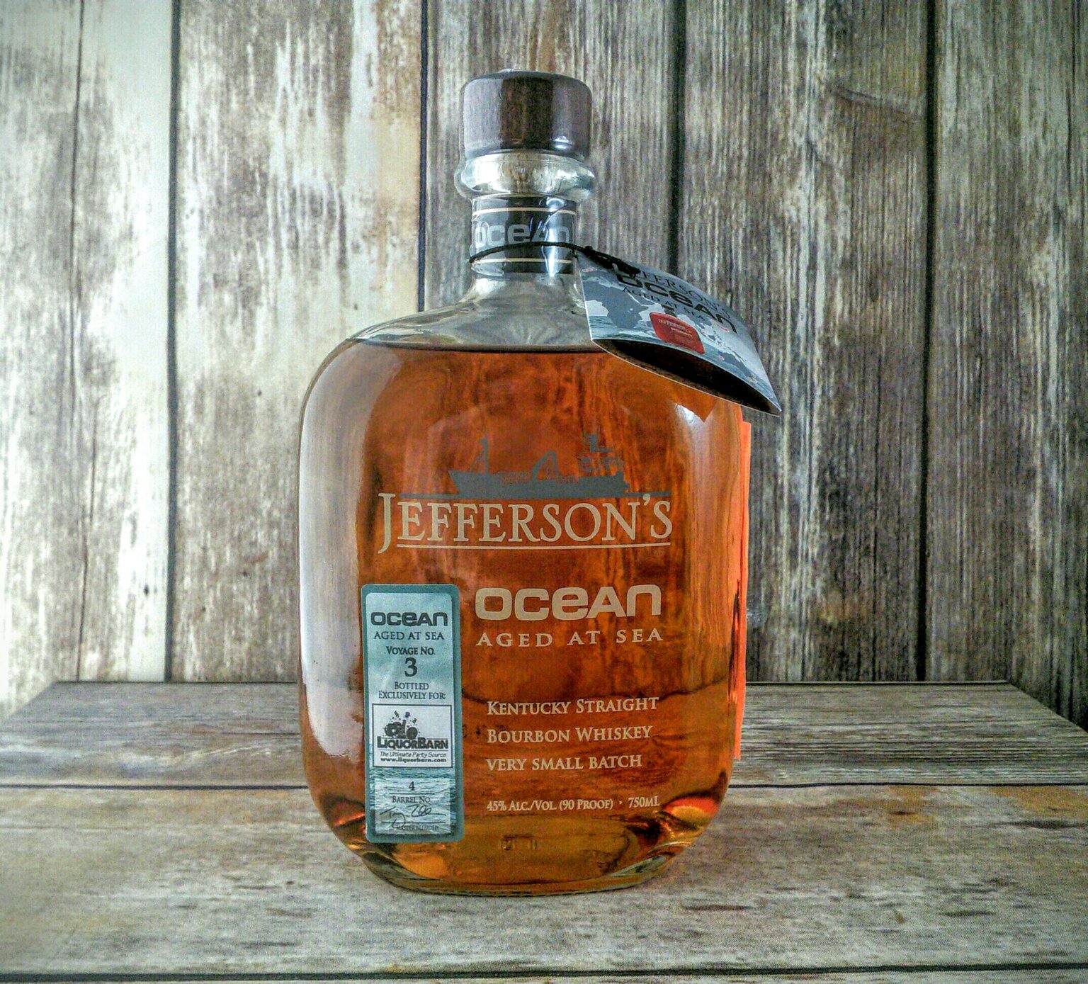 What happens when you put an already-aged barrel of bourbon on a ship, and send it around the world? Does the sea air, the extreme latitude and temperature changes, and constant sloshing of the bourbon inside the barrel make a discernible or positive difference in the final product? That’s the question Jefferson’s attempts to answer with their “Ocean” Series. They take Jefferson’s bourbon and put it on a ship. That ship sails around the world to 5 continents, crossing the equator multiple times, and eventually the bourbon finds its way back home to be bottled under the “Ocean” moniker. This bottle was from the 4th barrel selected by Liquor Barn, a big-box liquor retailer in Central Kentucky. It is 90 proof.